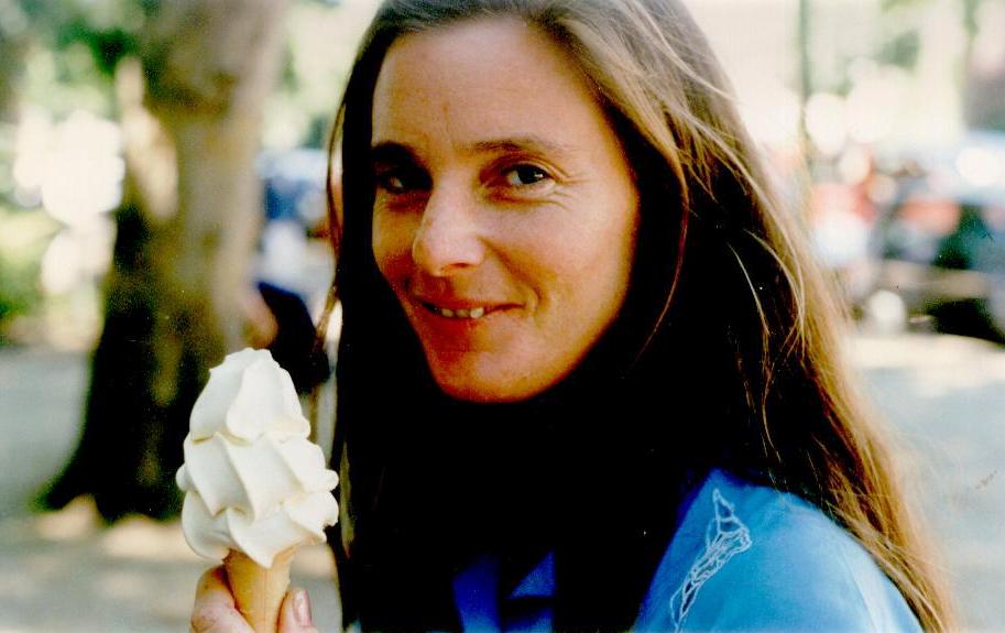 Barbara with her milk-tooth. Eating an ice cream many years ago on the Costa del Sol. Lenox' favourite picture.